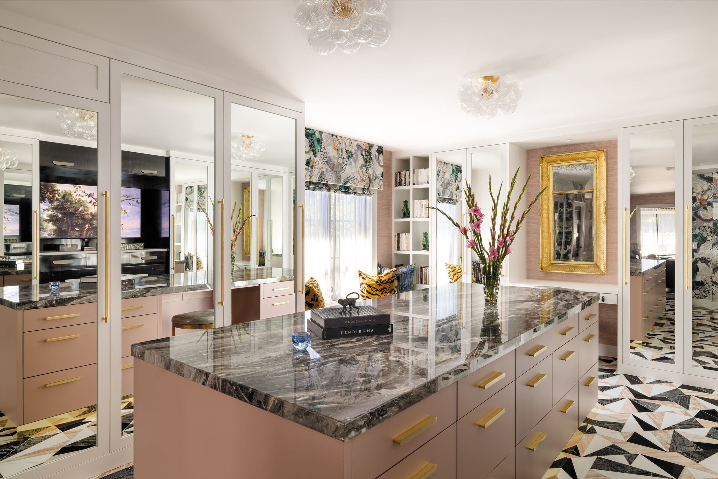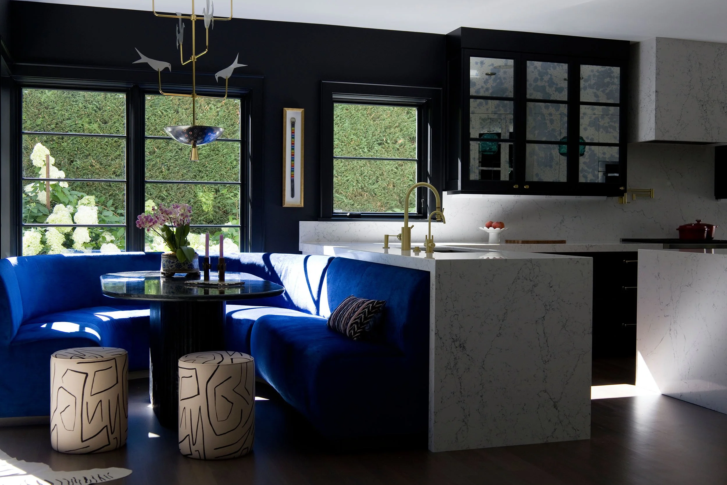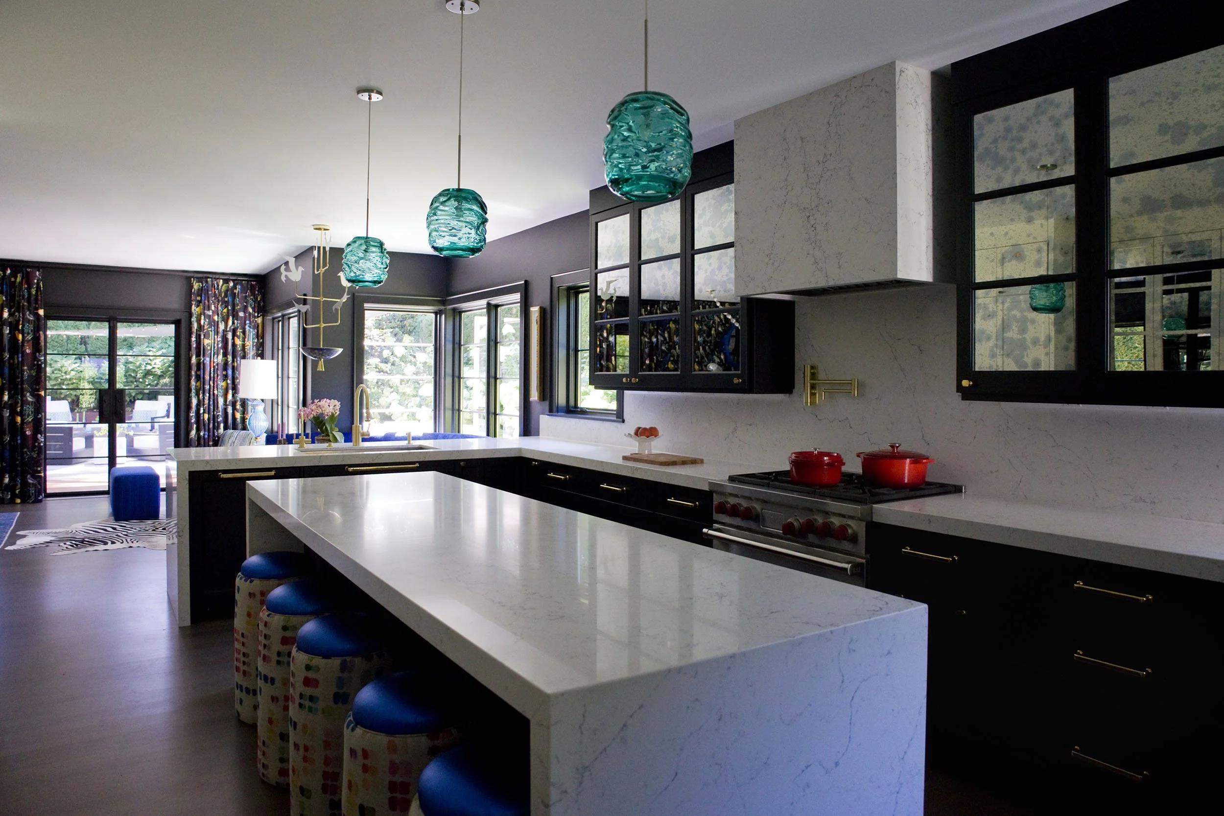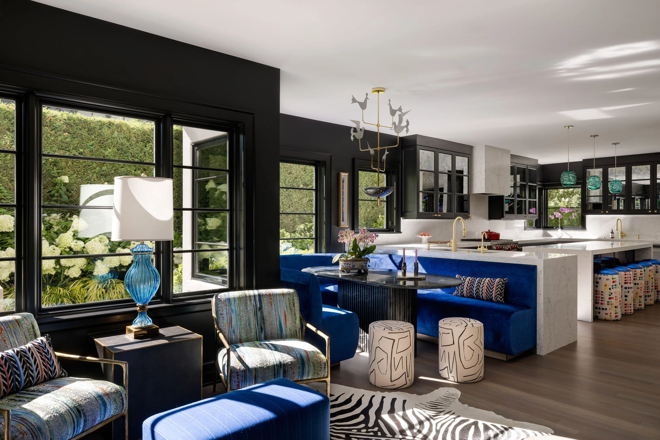 This project brings together bold design and a strong sense of personality through close collaboration between Studio TF and the homeowner, who led the interior design vision. Studio TF partnered with the homeowner to create a clear architectural framework that supports and enhances the layered interiors. Graphic drapery, patterned carpet, sculptural lighting, and saturated color add energy and contrast throughout the spaces. Thoughtful detailing and well-proportioned rooms allow art, furnishings, and personal collections to stand out, resulting in a home that feels expressive, balanced, and distinctly personal.